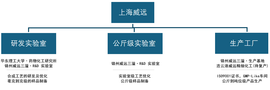公司分别于2006年全资投资成立第一座生产基地:连云港威远精细化工有限公司;2007年与华东理工大学药物化工研究所合作成立了氟化学工程中心;2020年入股锦州三溢科技有限公司,并与之共同投资成立了锦州威远三溢科技有限公司。